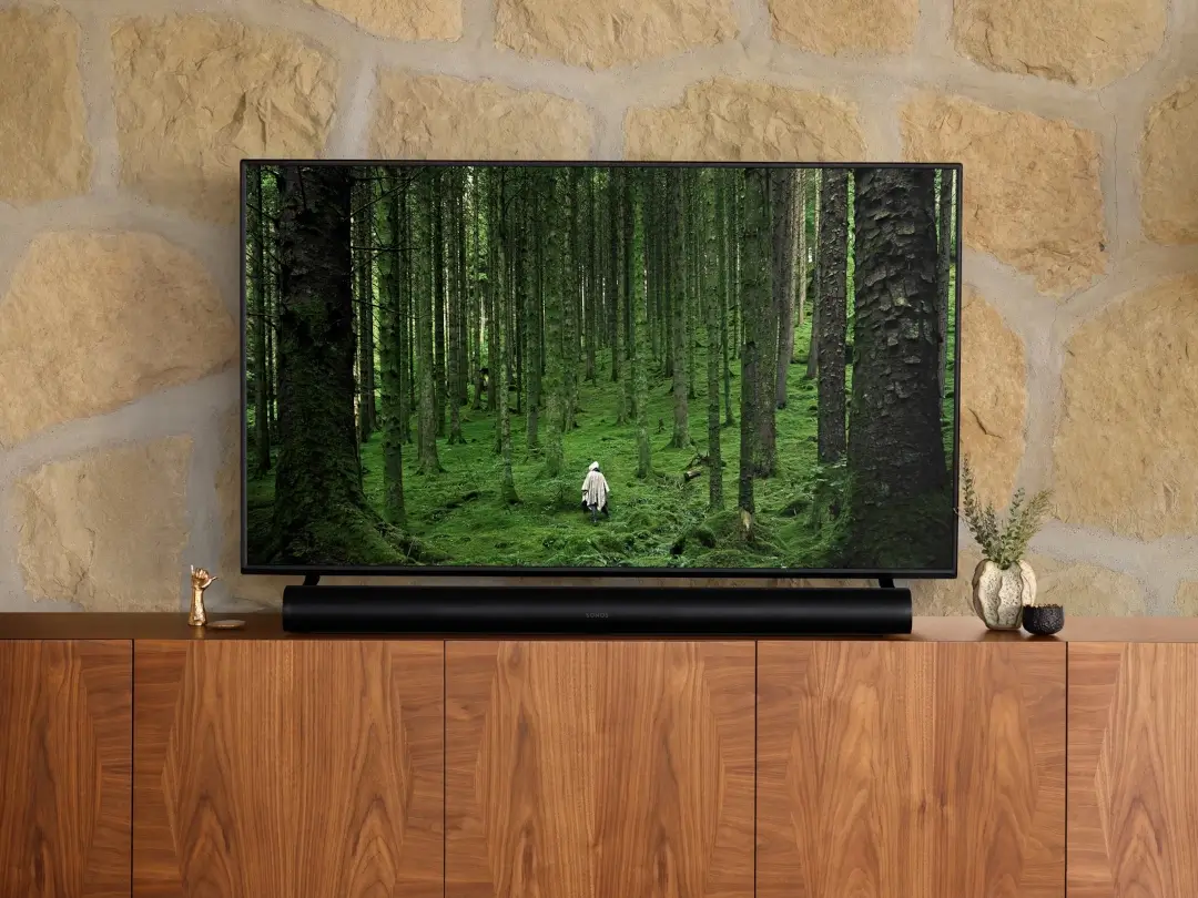 De Sonos Arc heeft een mooi, rond ontwerp en met een breedte van bijna 115 cm past hij perfect bij TV’s van 55 inch en groter. Met de geavanceerde surroundprocessor en 11 geïntegreerde luidsprekers produceert hij een geluid dat heel veel beter klinkt dan de piepkleine luidsprekertjes in je TV. Ook krijg je Night Sound – een instelling die geoptimaliseerd is voor laag volume, bijvoorbeeld ’s avonds als de kinderen al naar bed zijn.